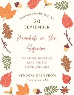 Sept 20-Saturday-10am-2pm CST-”Market on the Square”, Hoedown Day sponsored by the Breckinridge County Chamber of Commerce-vendor event (more info to follow)