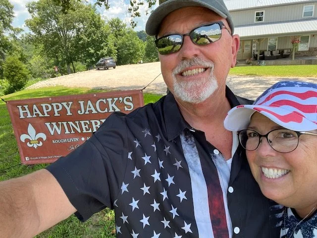 We turned our weekend getaway for 9 years at Rough River Lake into our home in July of 2021. We are both originally from Louisville and have decided to retire from our years of service as a police officer (Jack) and nurse (Tee). We would like instead to serve YOU~some delicious wine in a serene and peaceful country setting.